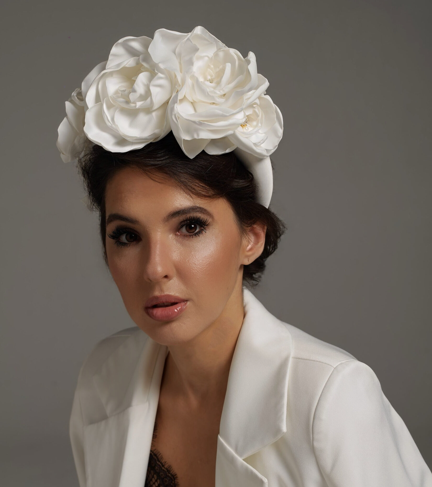 Основа ободка выполнена из нежнейшего шелка и бархата, обеспечивающего комфортную посадку. Россыпь сверкающих хрустальных бусин разных размеров добавляет образу сияние и роскошь, а цветы придают объем и неповторимый шарм. Изготовление под заказ до 2-х недель.