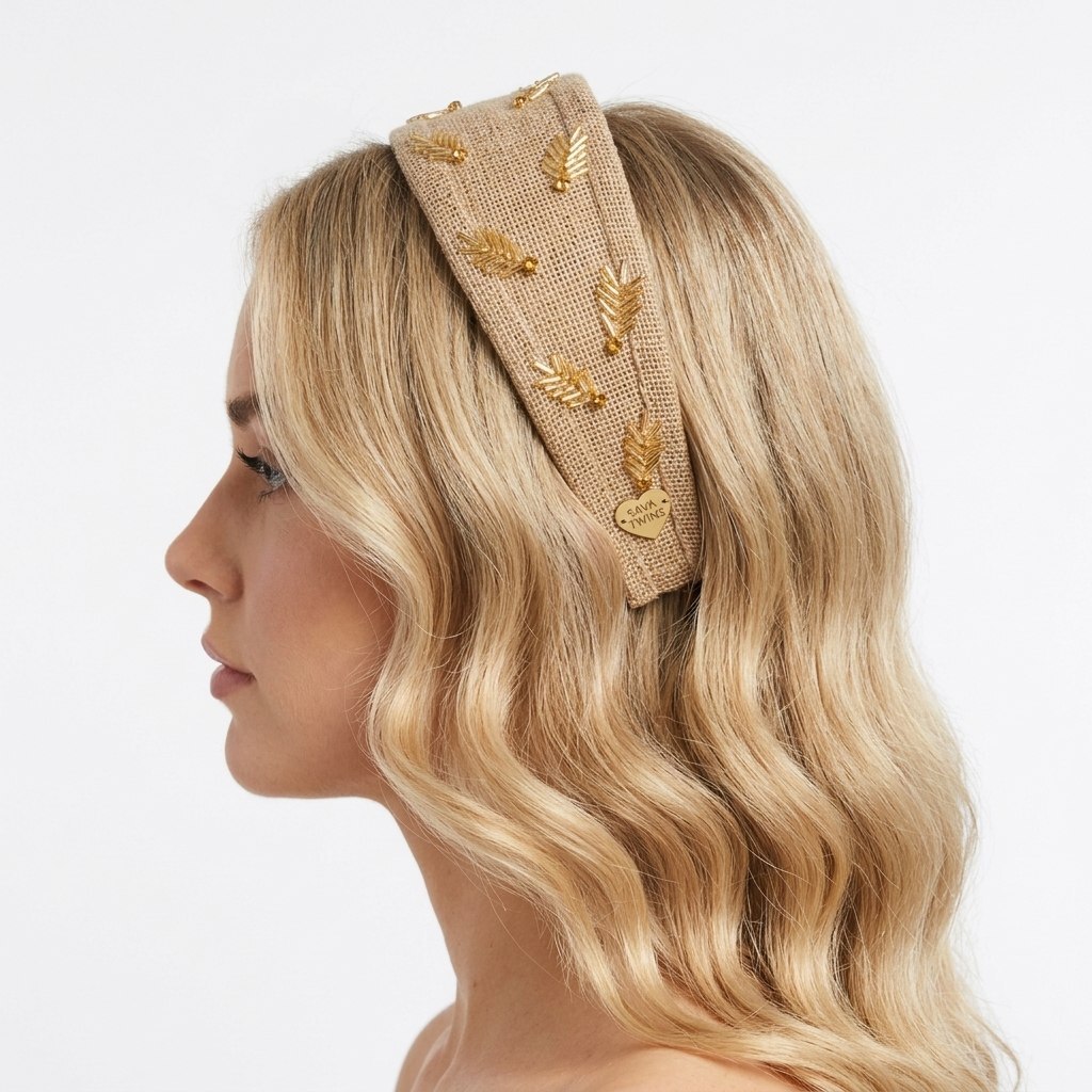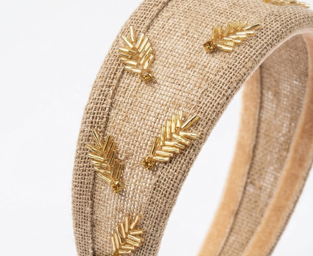 Ободок создан из джута и декорирован ручной вышивкой.