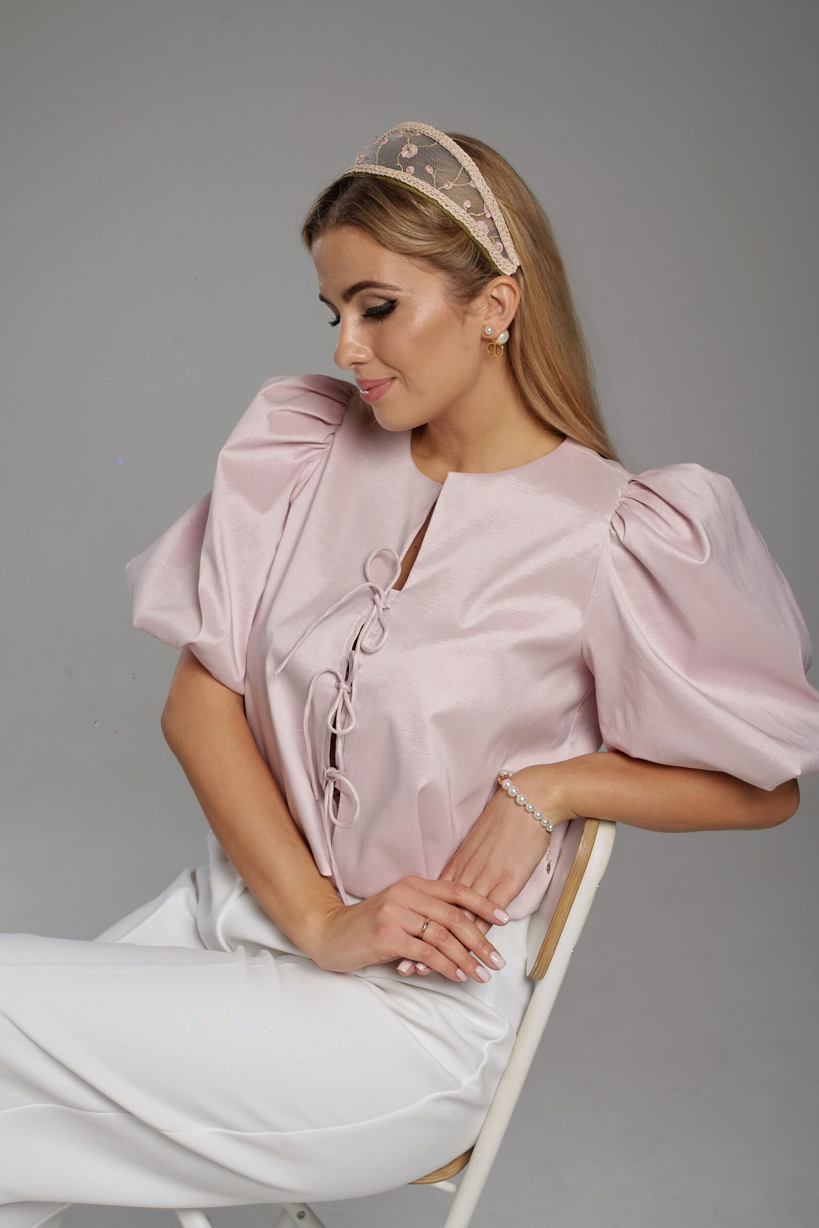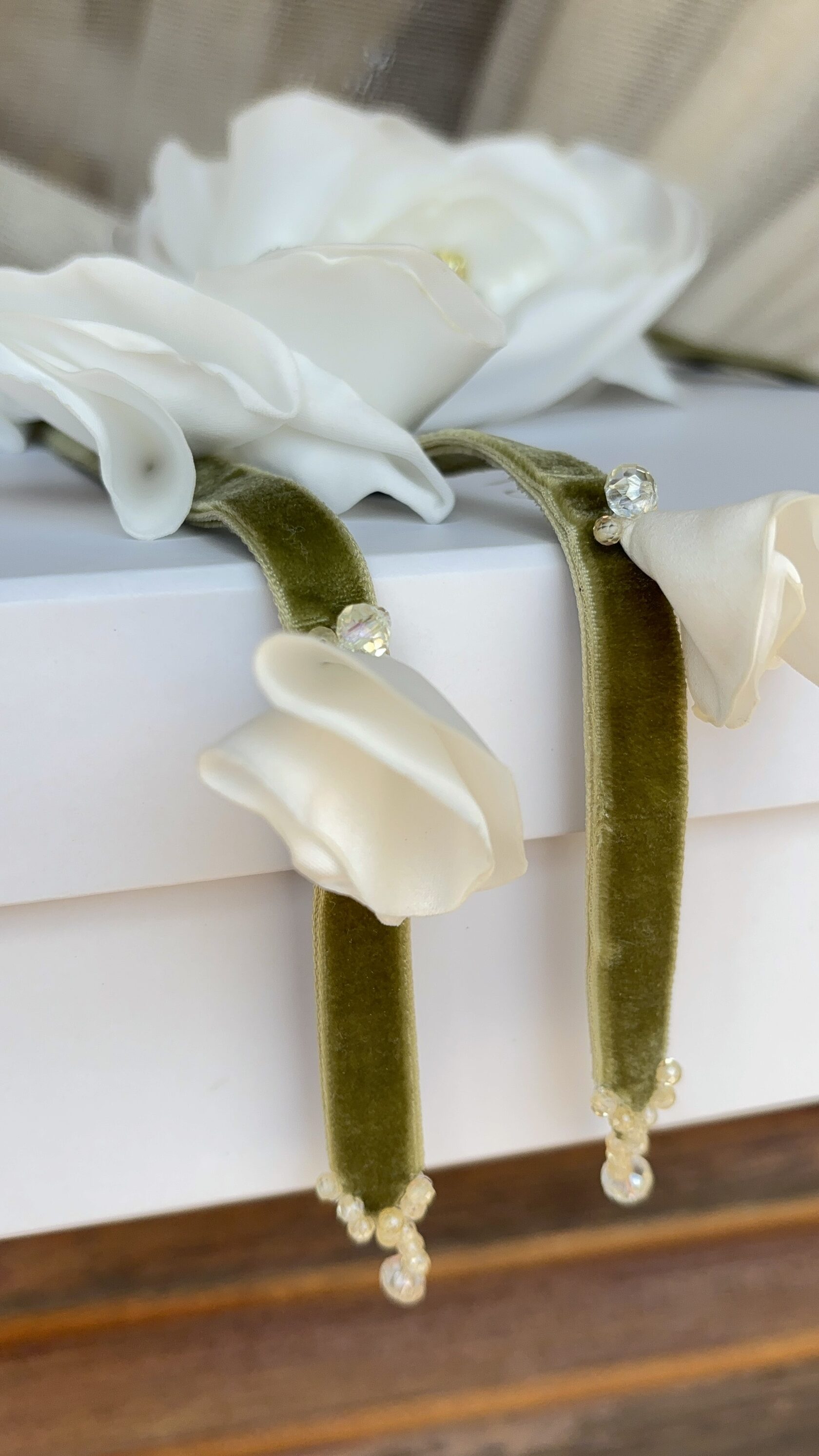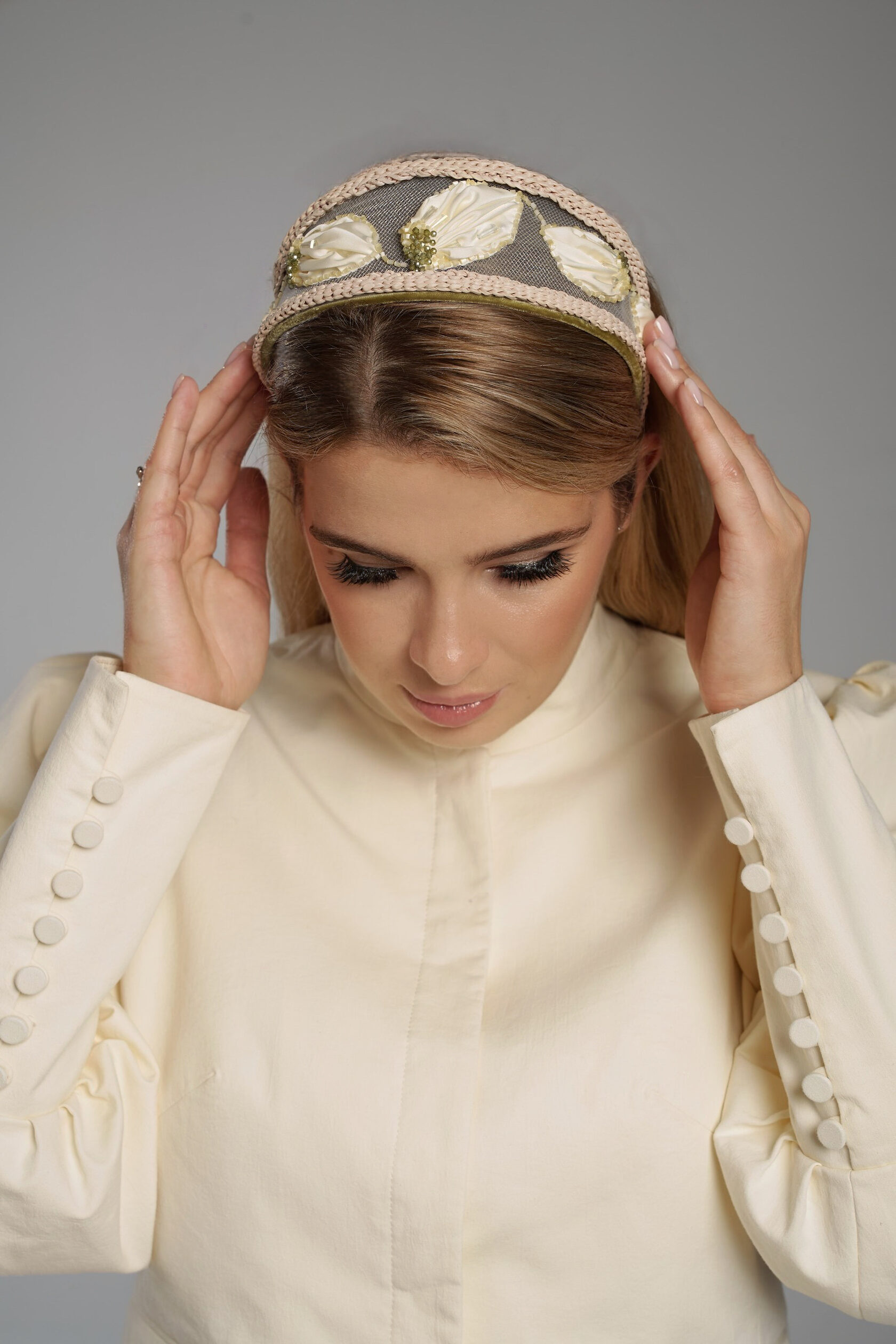 Созданные вручную шёлковые цветы на прозрачной сетке создают эффект легкости и невесомости ободка, а сверкающие цирконы дарят сияние.