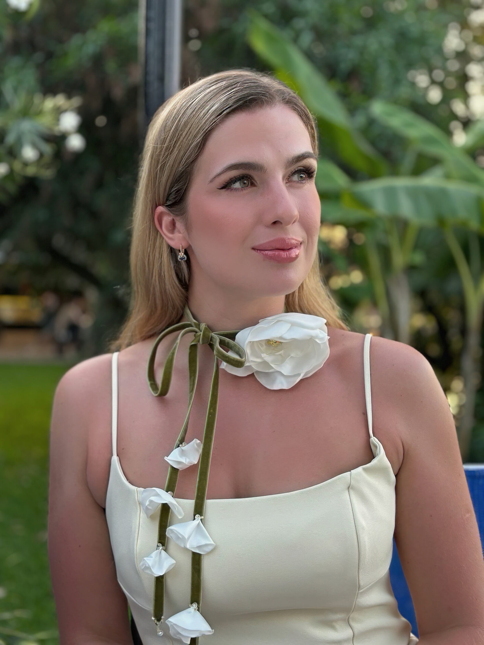 Этот стильный аксессуар можно носить как на шеи, так и на волосах.