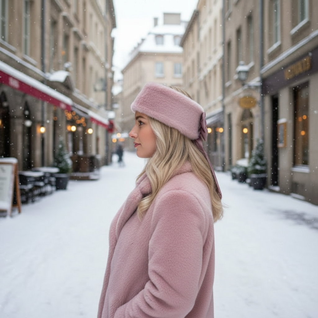 Меховая повязка для волос (розовая)