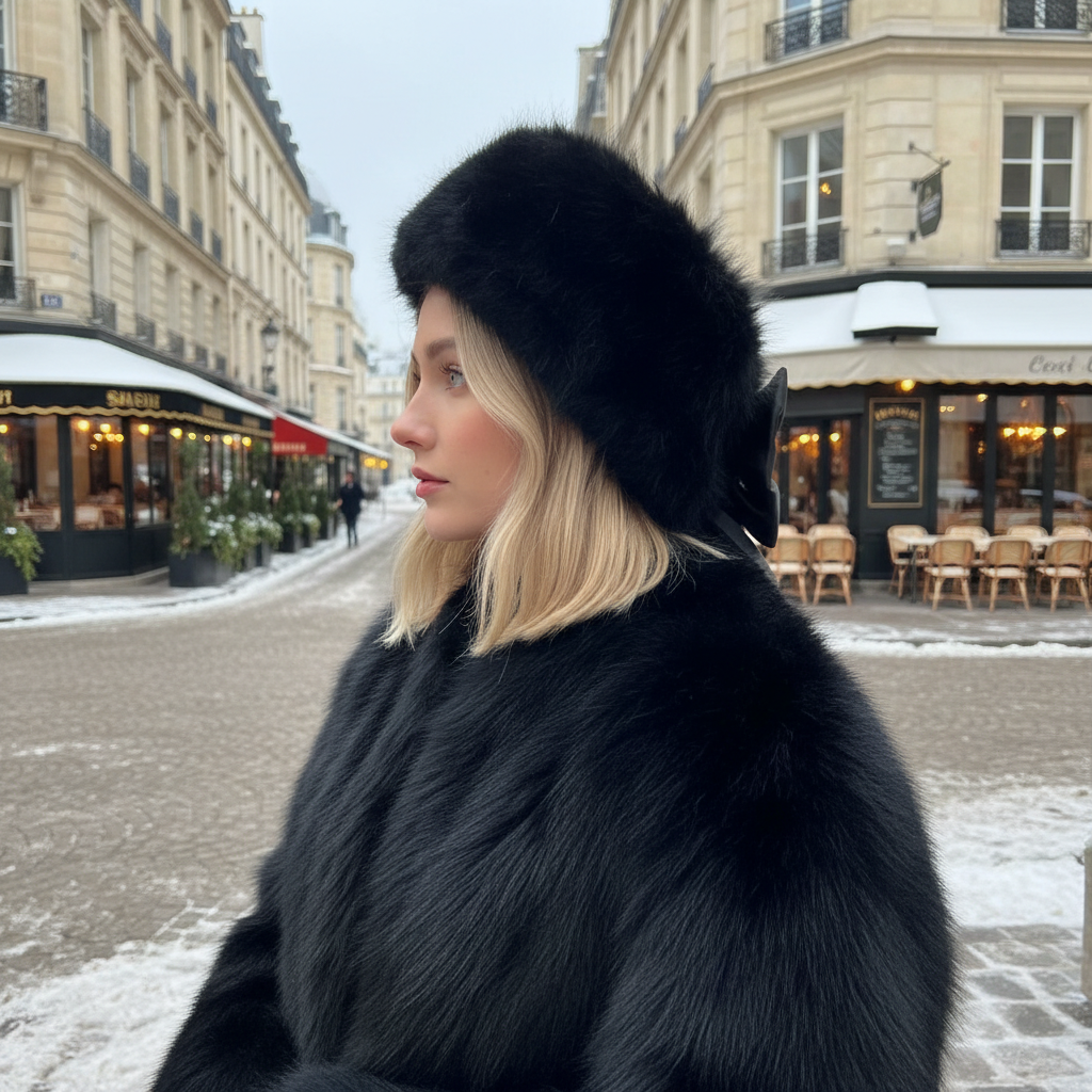 Меховая повязка для волос (черная)